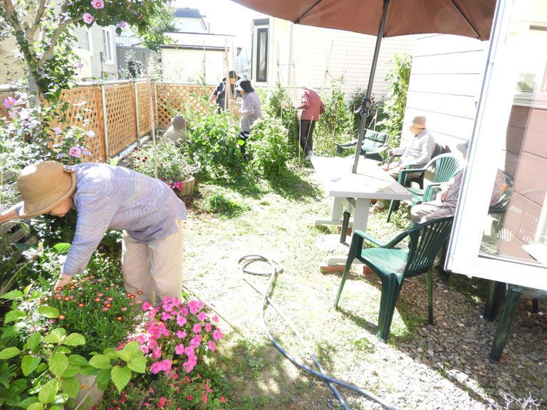 生活の場である自宅とかけ離れた場所ではなく、在宅の延長線上にあるこの環境、雰囲気の中で料理や掃除、日曜大工や庭の手入れなど、馴染みの仲間と共に様々なことを行っています。